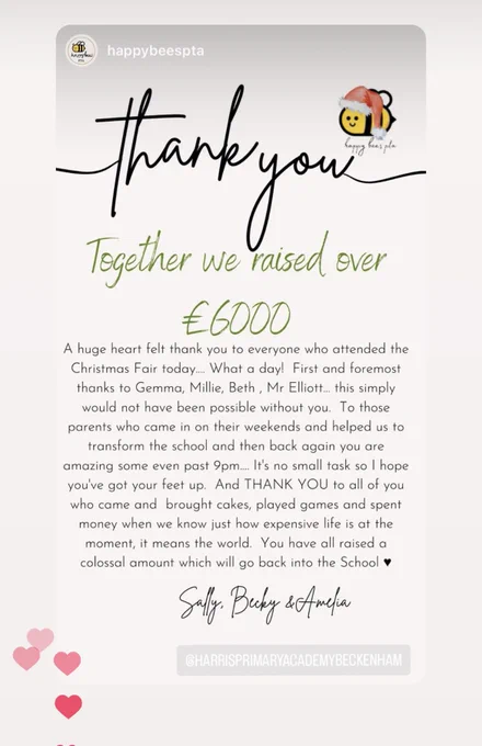 This is looking closer to the £7500 mark now! WOW. Huge thank you to our PTA, parents and staff that actively worked so hard together to achieve this from our Christmas Fair. What a community!
